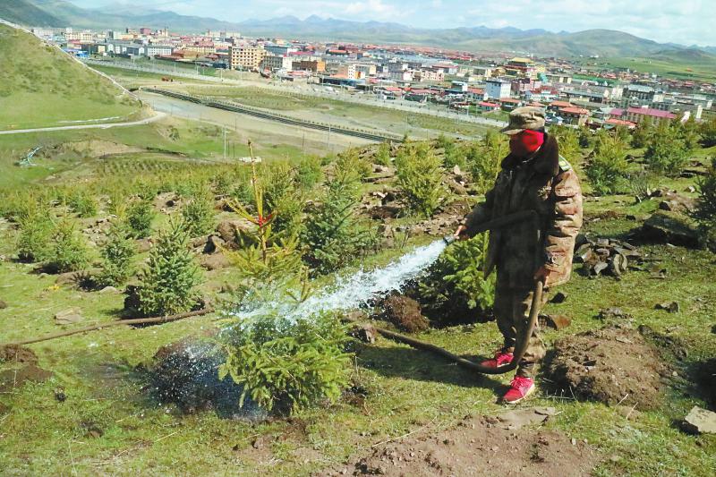 色達(dá)縣生態(tài)脆弱區(qū)治理后期管護(hù)。(色達(dá)縣林草局供圖)