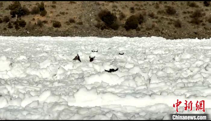 圖為被困冰面的白唇鹿。長(zhǎng)江源園區(qū)曲麻萊管理處 供圖