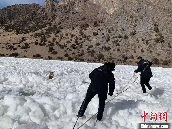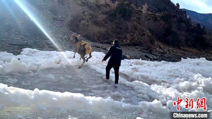 青海生態(tài)保護(hù)人員營救被困長(zhǎng)江源冰面一級(jí)保護(hù)動(dòng)物白唇鹿