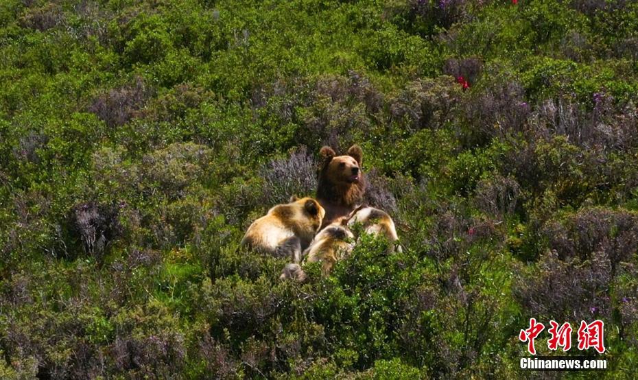 在四川省甘孜藏族自治州石渠縣蒙宜鎮(zhèn)蒙格村附近一處水草豐茂的山坡處拍攝時(shí),偶然發(fā)現(xiàn)一只棕熊媽媽曬著陽(yáng)光浴給三只小熊喂奶場(chǎng)景,棕熊媽媽喂奶結(jié)束后領(lǐng)著小熊寶寶們緩慢走向大山深處。[詳細(xì)] -