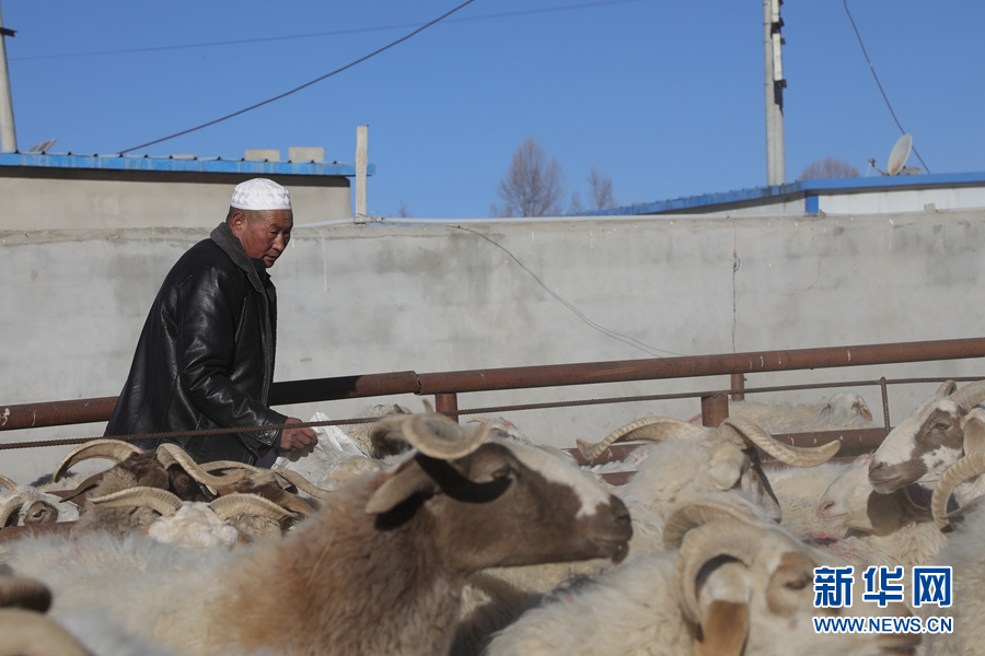 青海省海南藏族自治州共和縣興隆肉羊養(yǎng)殖專業(yè)合作社負(fù)責(zé)人馬生海在喂羊(1月28日攝)。新華社記者 趙玉和 攝