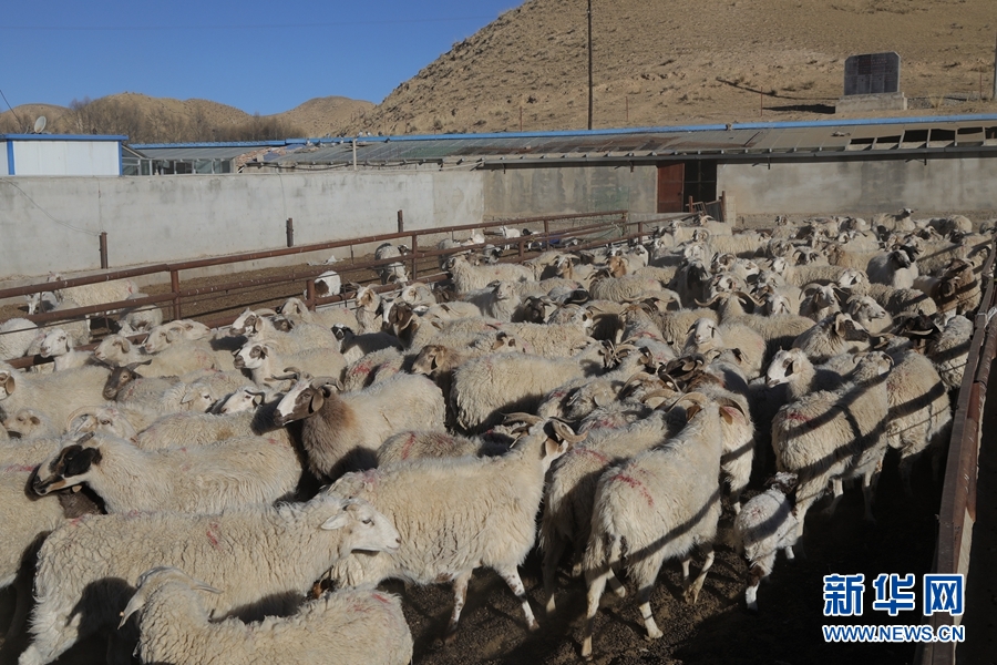 這是1月28日拍攝的青海省海南藏族自治州共和縣興隆肉羊養(yǎng)殖專業(yè)合作社的藏羊。新華社 趙玉和 攝