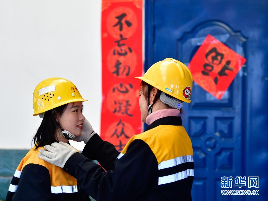 2月2日,在青藏鐵路公司西寧供電段哈爾蓋工區(qū),郭勝強(左)與羅露露在工作前互相檢查安全裝備。新華社記者 張龍 攝