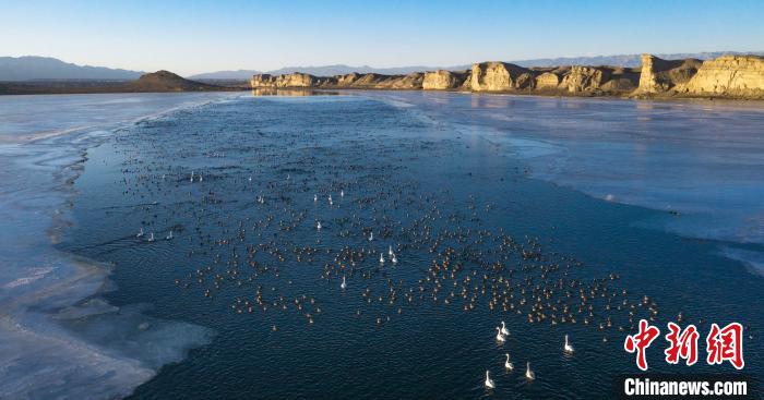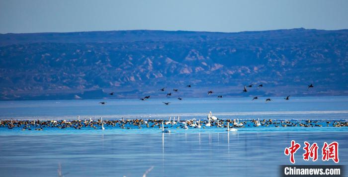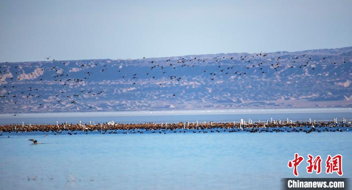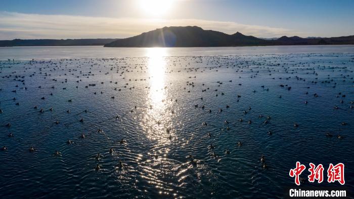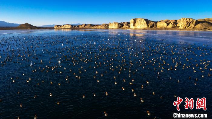 圖為上萬(wàn)只野生鳥(niǎo)類(lèi)在湖中游蕩。烏席勒 攝