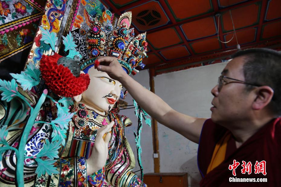 圖為塔爾寺下花院藝僧為酥油花主佛做最后修飾。張?zhí)砀?攝