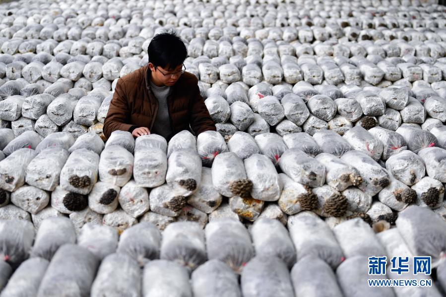 3月14日,在青海省果洛藏族自治州農(nóng)牧業(yè)生態(tài)科技示范園內(nèi),農(nóng)業(yè)技術(shù)員宋建東在查看平菇生長(zhǎng)情況。新華社記者 張龍 攝