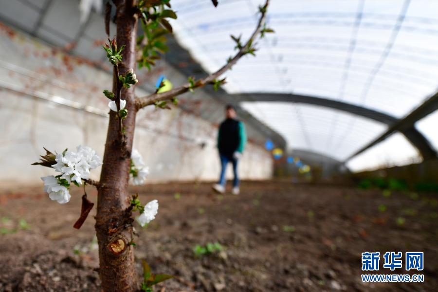 3月14日,在青海省果洛藏族自治州農(nóng)牧業(yè)生態(tài)科技示范園內(nèi),農(nóng)業(yè)技術(shù)員冷治在櫻桃樹(shù)種植棚內(nèi)工作。新華社記者 張龍 攝