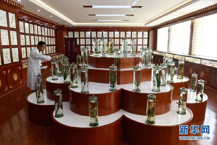 3月16日,在果洛藏族自治州職業(yè)技術(shù)學(xué)校,2020級(jí)藏醫(yī)醫(yī)療與藏藥專業(yè)學(xué)生華旦在草藥標(biāo)本館內(nèi)辨認(rèn)藥材。新華社記者 張龍 攝