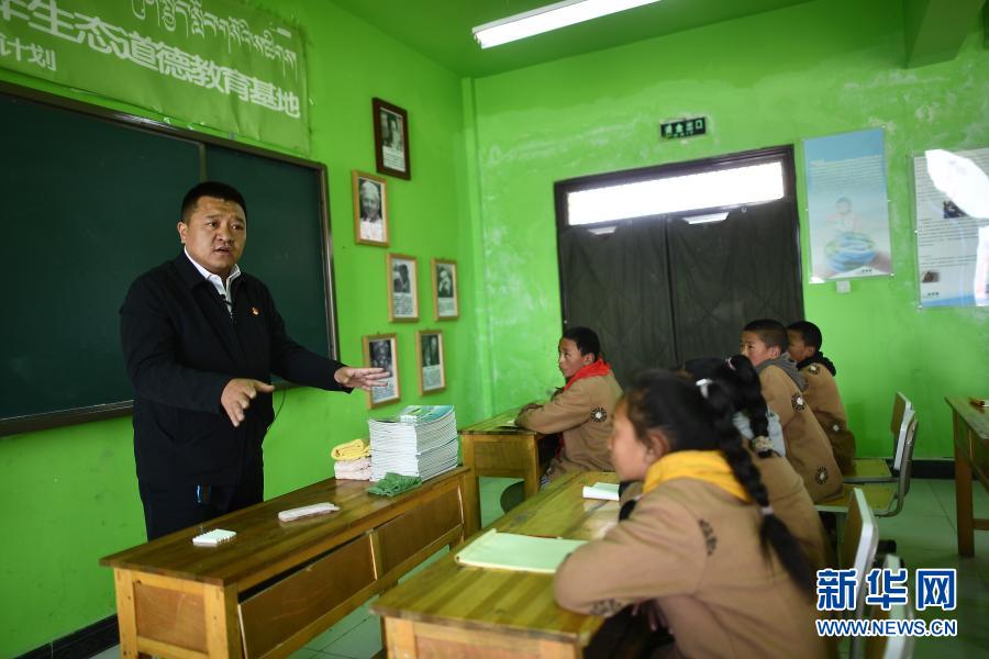 3月23日,青海省玉樹藏族自治州治多縣吉尕小學舉行一場特殊的生態(tài)課,邀請“環(huán)保衛(wèi)士”杰桑·索南達杰之子索南旦正為學生授課。自2015年起,治多縣以杰?!に髂线_杰精神為主線,通過主題班會、生態(tài)課堂、櫥窗宣傳等方式在全縣校園內(nèi)開展生態(tài)教育活動。2018年,治多縣在吉尕小學設立三江源國家公園園區(qū)青少年生態(tài)道德教育基地,培養(yǎng)學生樹立“環(huán)保從我做起”的意識。截至目前,生態(tài)課堂已覆蓋治多縣10所中小學近5000名學生。