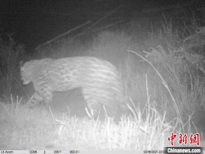 記者26日從青海省玉樹州稱多縣公安局森林警察大隊(duì)獲悉,23日,稱多縣公安局森林警察大隊(duì)紅外監(jiān)控系統(tǒng)再次監(jiān)測到國家一級(jí)保護(hù)動(dòng)物金錢豹的活動(dòng)畫面。這是繼2020年3月監(jiān)測到金錢豹后,稱多縣境域內(nèi)第二次監(jiān)測到該動(dòng)物的畫面,也是畫面最完整的一次。