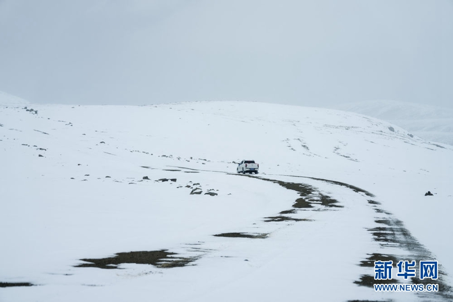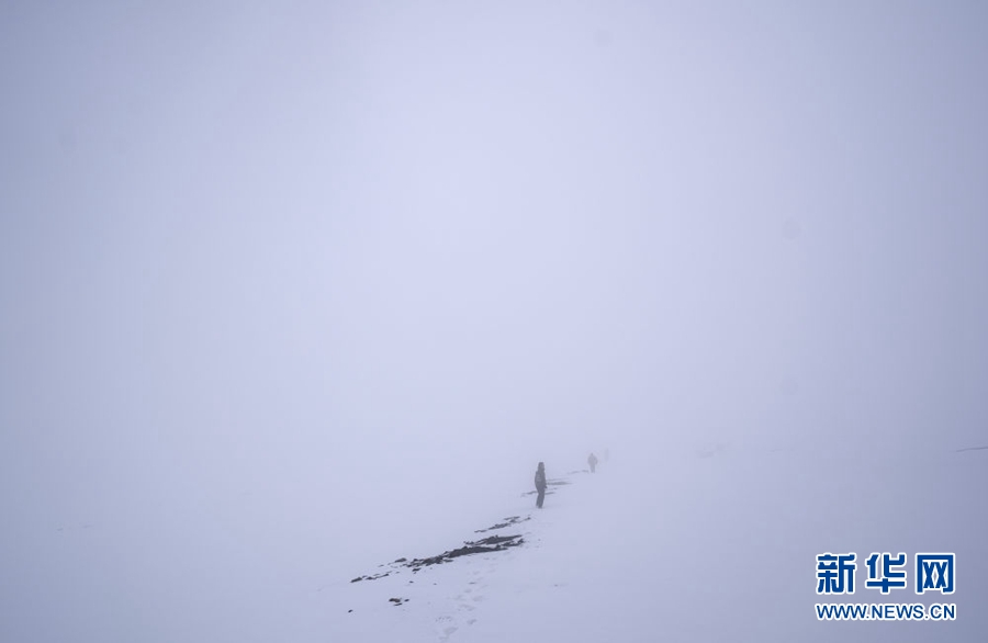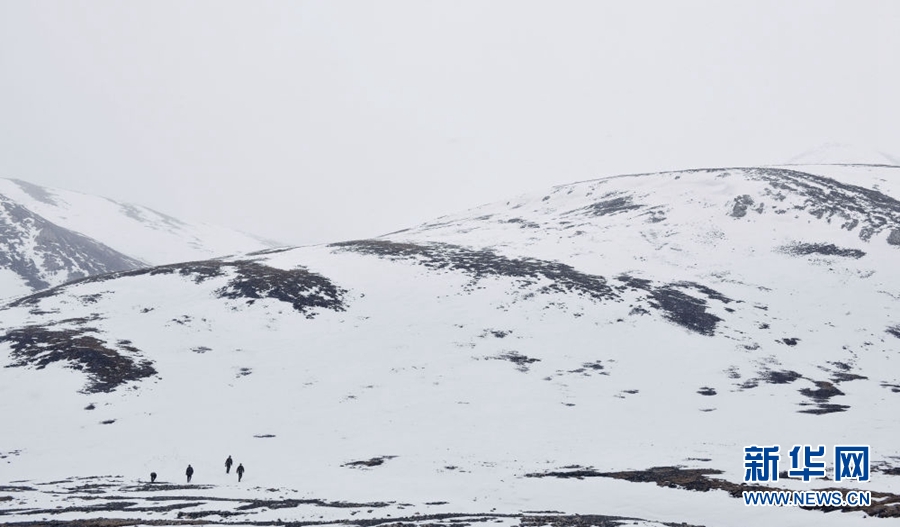 4月23日,祁連山國家公園沙龍灘管護站的生態(tài)管護員冒雪徒步巡護。新華社記者 費茂華 攝