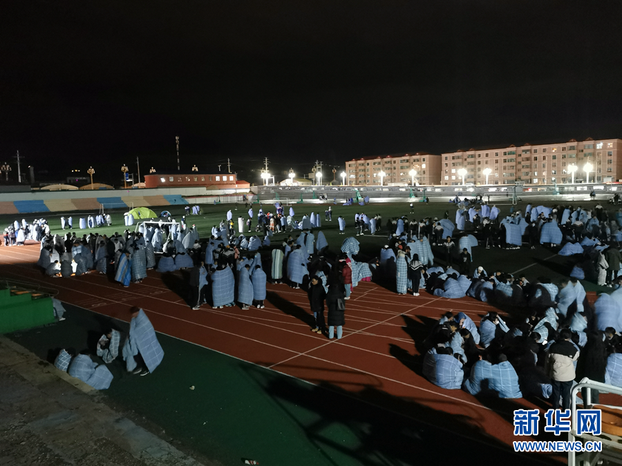 5月22日凌晨,在青海省果洛藏族自治州州府瑪沁縣,果洛州民族高級(jí)中學(xué)的學(xué)生在操場(chǎng)避險(xiǎn)。新華社發(fā)