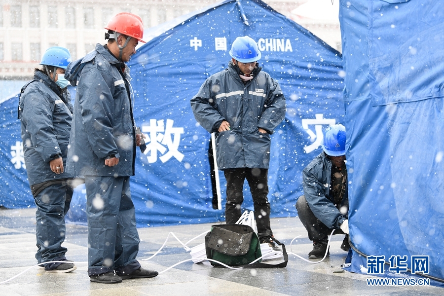 為了點(diǎn)亮災(zāi)區(qū)首夜,國(guó)家電網(wǎng)青海省電力公司組織143名應(yīng)急搶修人員,爭(zhēng)分奪秒為安置點(diǎn)通電。