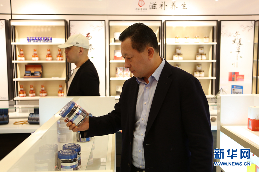 一位浙商正在查看展出的黑枸杞產(chǎn)品。新華網(wǎng) 卡婭梅朵 攝