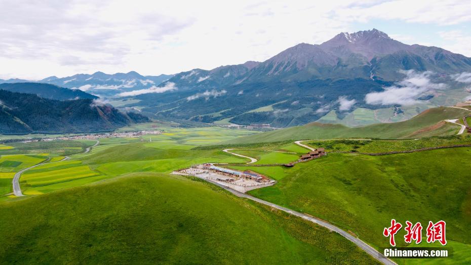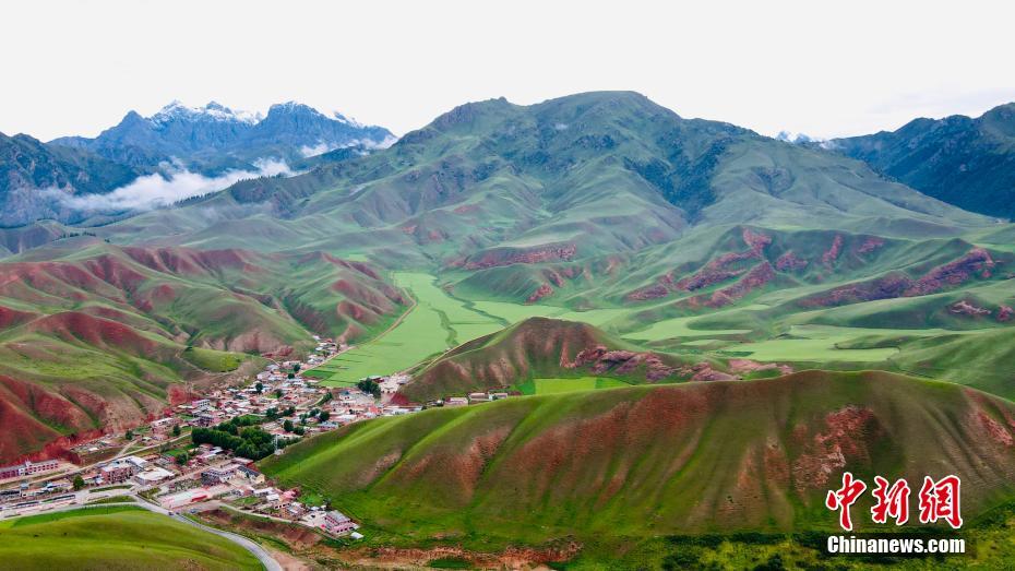 7月11日,航拍夏日的祁連山國家公園青海片區(qū)。綠意蔥蔥的祁連林海與遠處一座座連綿不斷的雪山,構成了一幅美麗畫卷。(無人機照片) 中新社記者 李江寧 攝