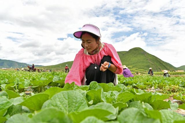 圖為澤讓姐在娃娃菜地里除草。新華社記者 李鑫 攝