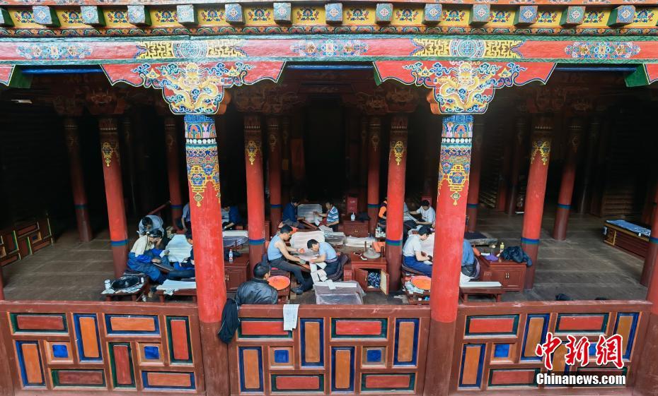 7月20日,四川德格,印經(jīng)院內(nèi)忙碌的印刷工人。中新社記者 劉忠俊 攝