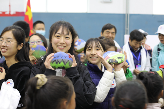 活動(dòng)現(xiàn)場,福利學(xué)校的孩子們將親手制作的石頭畫送給成長營的小老師們。受訪者供圖