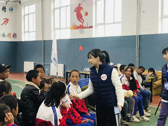 給孩子上課的6名小老師都來自“同心·共鑄中國心”青海果洛行成長營公益項(xiàng)目,均是志愿者子女,平均年齡18歲。