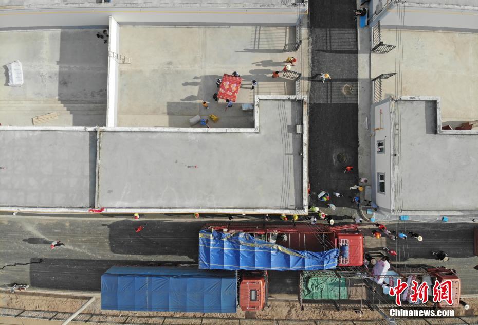 8月7日,甘肅省舟曲縣首批60戶289名地質(zhì)災(zāi)害避險(xiǎn)搬遷村民到達(dá)蘭州新區(qū)并入住。甘肅舟曲縣啟動地質(zhì)災(zāi)害避險(xiǎn)搬遷工作,第一批次60戶289人集中告別故土,乘車前往數(shù)百公里之外的蘭州新區(qū)。(無人機(jī)拍攝) 中新社記者 楊艷敏 攝