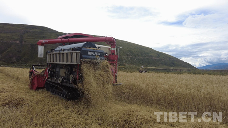 中國西藏網訊 金燦燦的麥浪映襯著農民的笑臉,沉甸甸的麥穗承載著豐收的喜悅。8月18日,在四川省甘孜藏族自治州爐霍縣斯木鎮(zhèn)章達村的青稞地里,麥浪翻滾,大型聯(lián)合收割機來回穿梭忙著收割,標志著爐霍縣青稞機收作業(yè)正式拉開序幕。