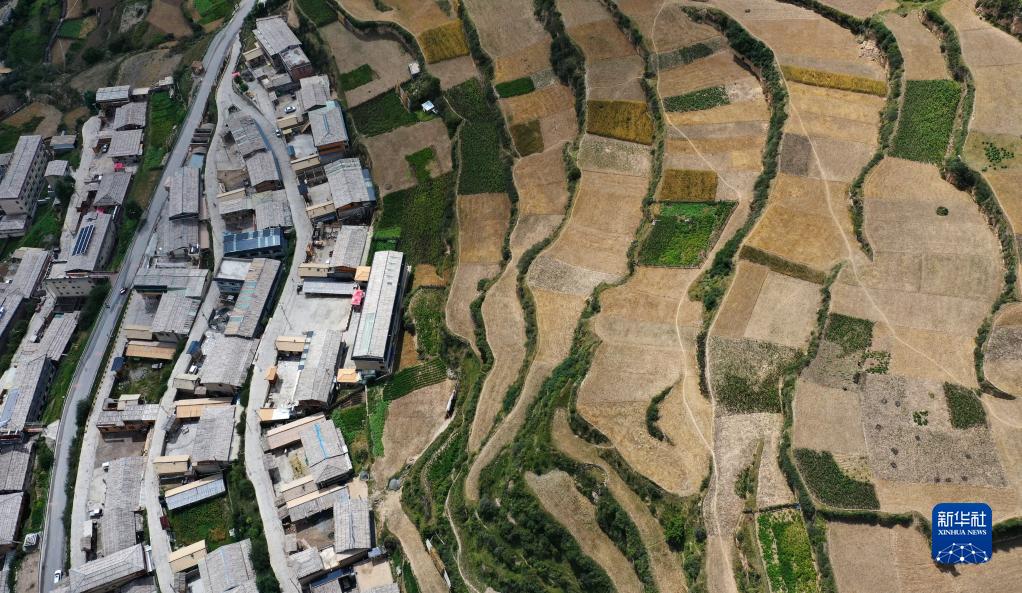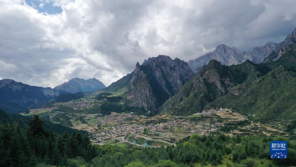 這是8月28日拍攝的扎尕那美麗風光(無人機照片)。新華社記者 陳斌 攝
