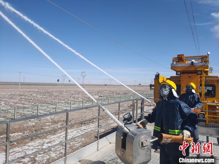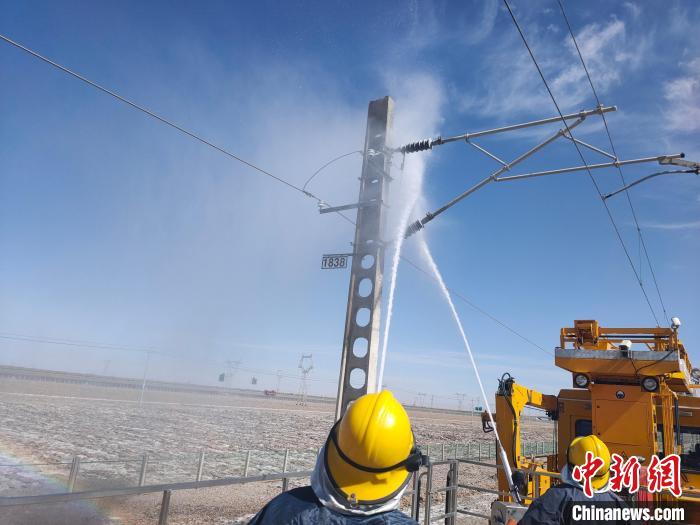 世界首條鹽湖鐵路絕緣子開始清洗