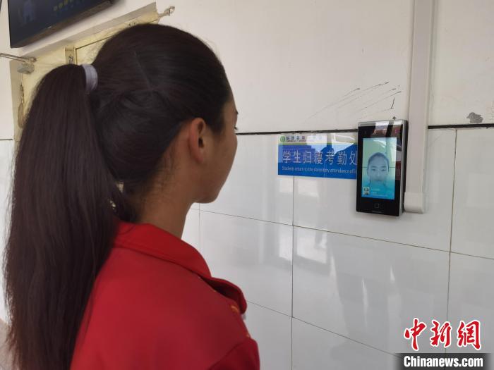 圖為學(xué)生“刷臉”歸寢考勤登記。張婧 攝