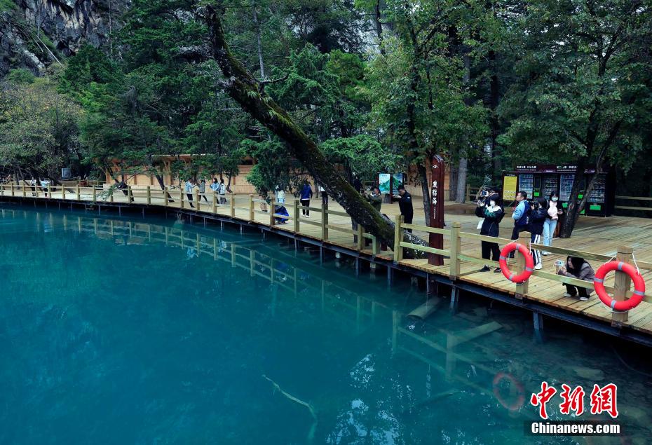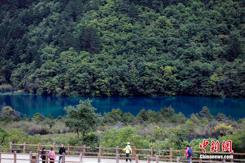 9月27日,四川阿壩,游客在九寨溝景區(qū)游覽。王磊 攝