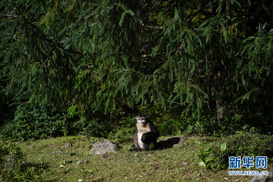 滇金絲猴正在外出活動(dòng)(2021年9月16日攝)。新華網(wǎng)發(fā)(劉祖平 攝)