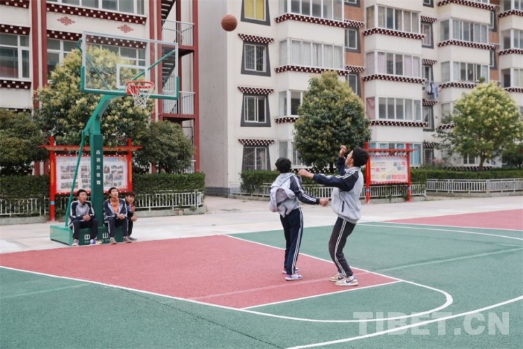圖為甘孜州兒童福利院內(nèi),孩子們?cè)诖蚧@球 攝影:楊月云