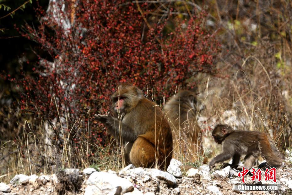 圖為林區(qū)內(nèi)的藏獼猴。張希紅 攝