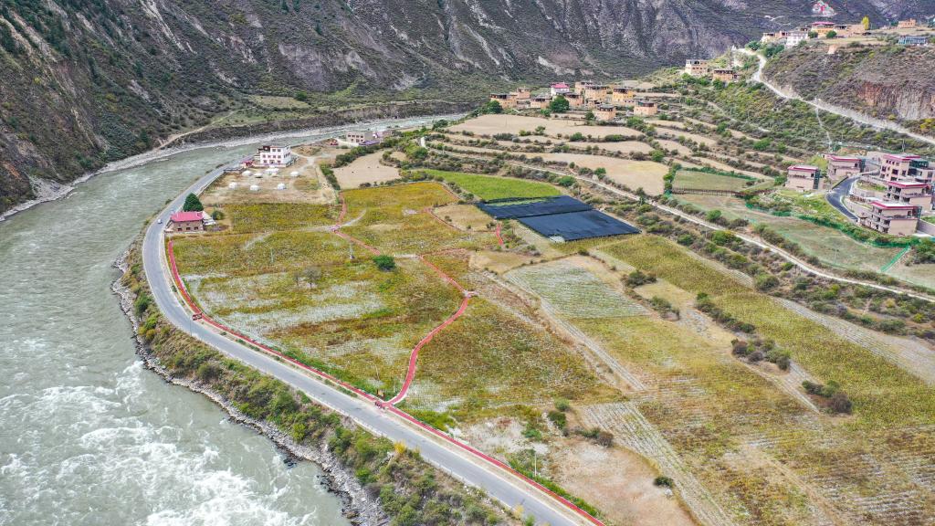 10月20日在四川甘孜藏族自治州新龍縣拍攝的雅礱江邊的仁乃農(nóng)旅融合示范園。新華社記者 王曦 攝