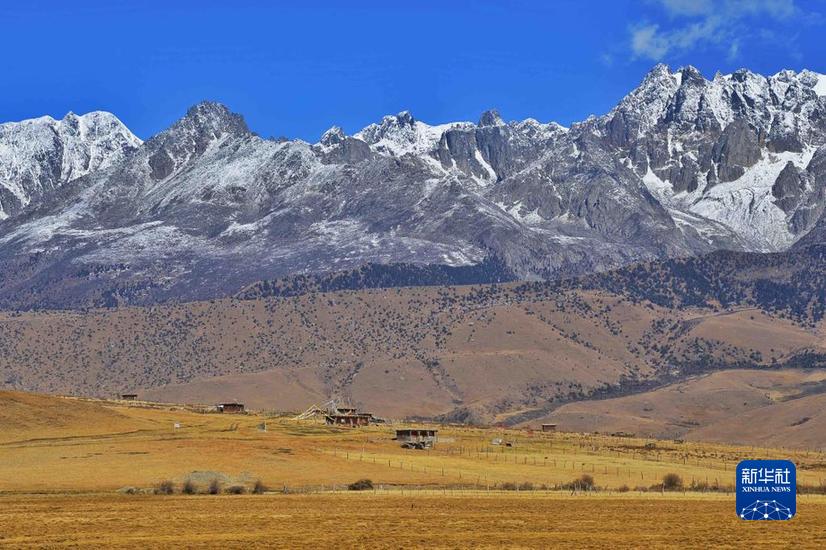 這是10月24日在措普溝景區(qū)內(nèi)拍攝的章德草原和扎金甲博神山。新華社記者 劉坤 攝