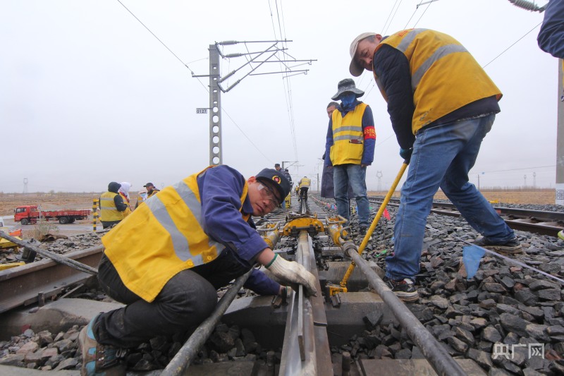 深秋時(shí)節(jié),在青海省海西蒙古族藏族自治州,巴音河畔的德令哈市雨雪飄揚(yáng)。在鄰近德令哈站的鐵路區(qū)間上,170余人正在火熱工作中。