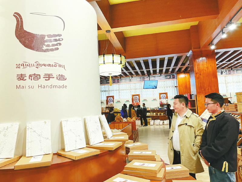 “康巴文都”文創(chuàng)產(chǎn)品展示中心內(nèi),許多德格手工藝人的作品在這里展示銷售,它們大多來自德格縣麥宿片區(qū)。這里,正是成都高新區(qū)幫扶德格縣手工藝產(chǎn)業(yè)發(fā)展的“主戰(zhàn)場(chǎng)”。