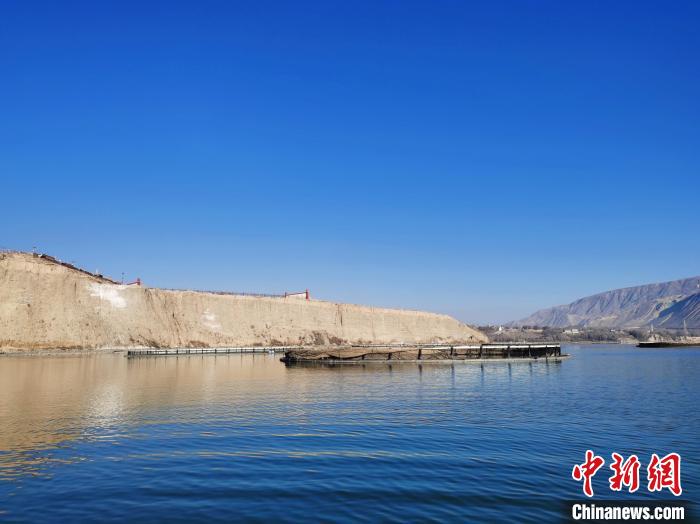 圖為青海省黃南藏族自治州尖扎縣黃河水面冷水魚(yú)養(yǎng)殖網(wǎng)箱?!?zhí)砀!z