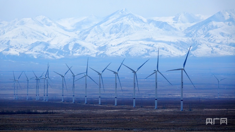 雪山下的風(fēng)力發(fā)電機(jī)組(央廣網(wǎng)記者 張海東 攝)