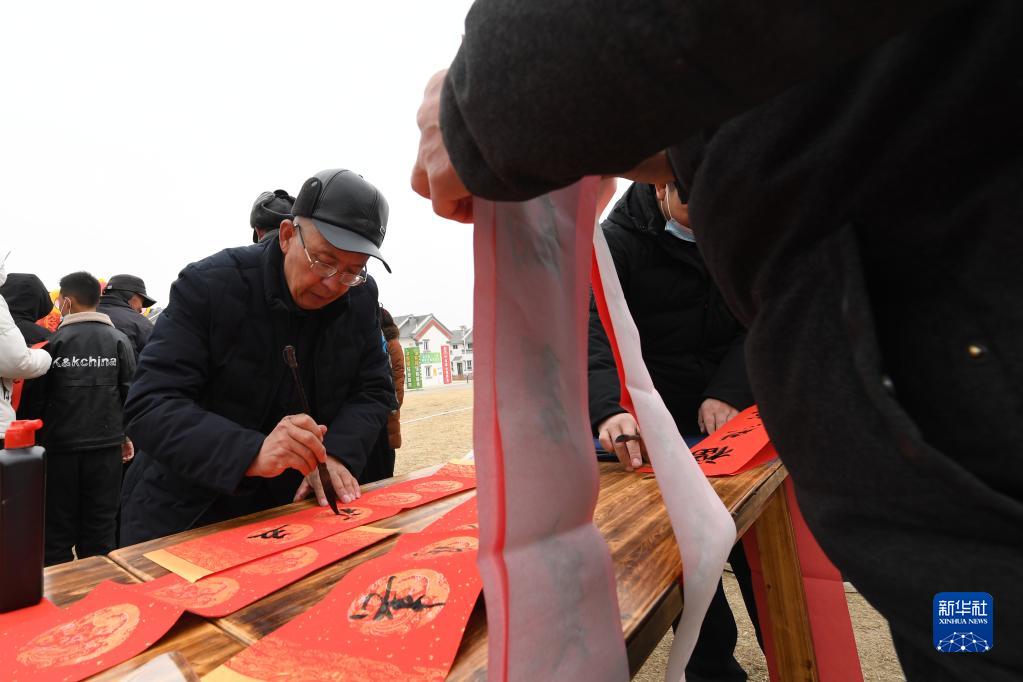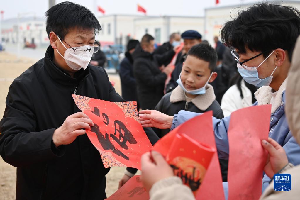 1月25日,在蘭州新區(qū)舟曲避險搬遷安置點,舟曲地質(zhì)災(zāi)害避險搬遷第一臨時黨支部組織書法家給搬遷群眾送春聯(lián)。新華社記者 范培珅 攝