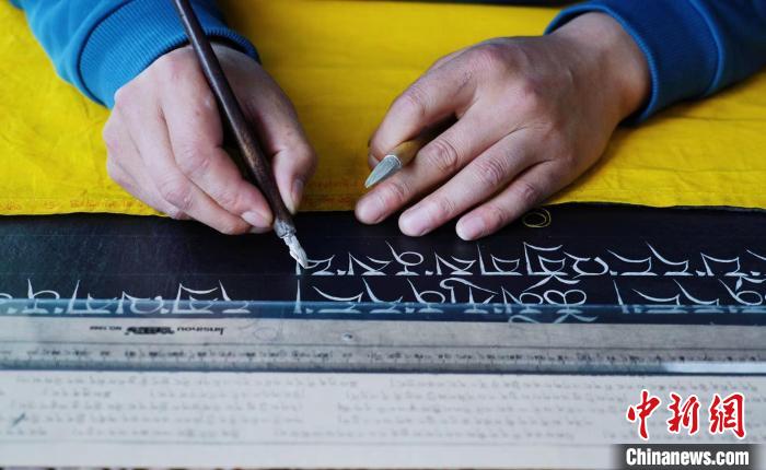 28歲的彭合日是傳習中心的一名優(yōu)秀學員?!皝磉@里工作已經(jīng)七年時間。金汁書寫經(jīng)文是藏族的傳統(tǒng)文化,但在特制的藏紙上抄寫經(jīng)文還是有難度。我們要根據(jù)紙的尺寸,設(shè)定藏文字體大小,老師就一筆一畫給我們教,直到能獨立抄寫經(jīng)文?!睂τ谶@份家門口的工作,彭合日很滿意,每個月能拿到4000多元工資,抄寫經(jīng)書越多工資也會相應有增加,這也將是自己走向社會的一門手藝。