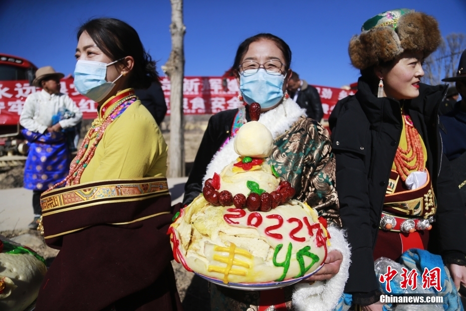 2月24日,青海省海南藏族自治州貴德縣拉西瓦鎮(zhèn)十個(gè)村的藏族民眾身著盛裝,端著寓意風(fēng)調(diào)雨順、五谷豐登的饃饃(藏語稱之為“彤糕”)來到田間,參加傳統(tǒng)春耕儀式。儀式上,民眾撒種祈福,再現(xiàn)當(dāng)?shù)剞r(nóng)耕從人力耕作到人畜耕作,再到機(jī)械耕作的發(fā)展過程,并用“二牛抬杠”的傳統(tǒng)方式開啟新春第一犁,寄托對(duì)國(guó)泰民安、五谷豐登的美好期望。