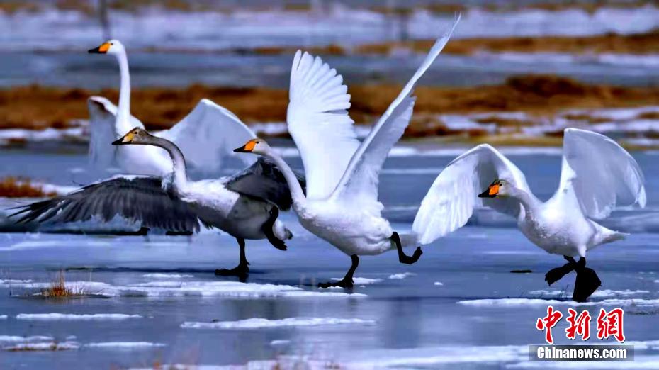 新年伊始,攝影愛好者在青海湖西岸的黑馬河拍到成群大天鵝,冰面散步、水中游弋、展翅飛翔,成為草原冬日里獨特的景致。[詳細]
