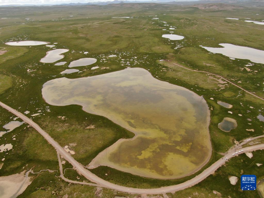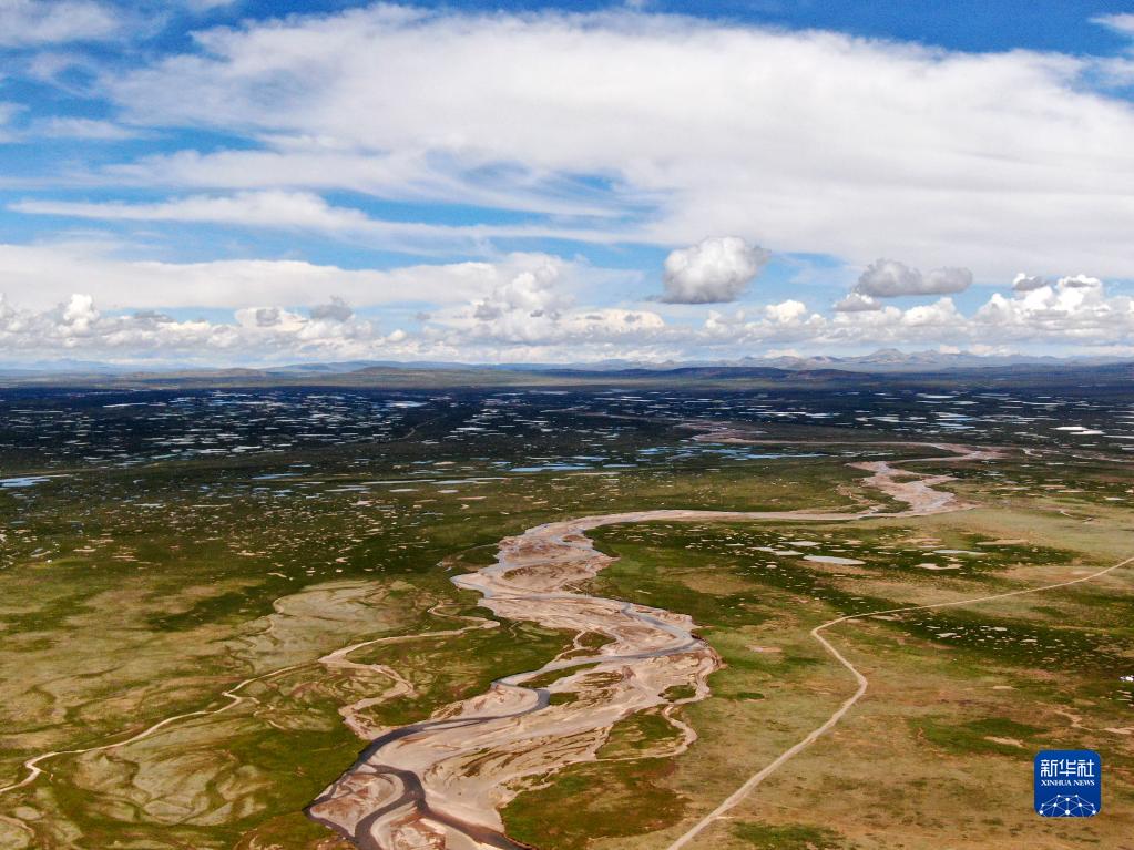 這是2021年7月23日拍攝的長(zhǎng)江源地區(qū)的查旦濕地(無人機(jī)照片)。新華社記者 張龍 攝