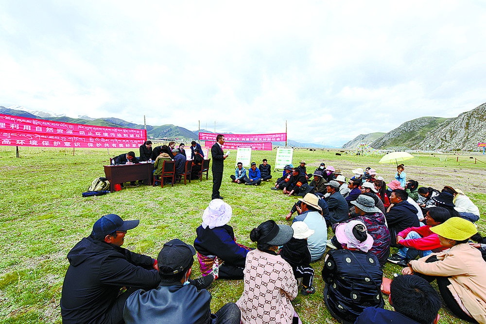 玉樹(shù)市人民法院在巴塘鄉(xiāng)開(kāi)展生態(tài)司法普法宣傳。