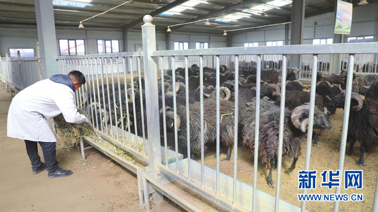 (資料圖)飼養(yǎng)員為養(yǎng)殖的黑藏羊添加飼料。新華網(wǎng)發(fā)