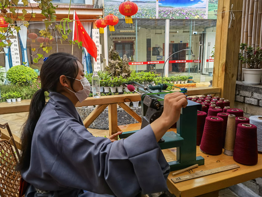 2022年5月12日,“5·12”汶川特大地震抗震救災(zāi)14周年紀(jì)念日,山鷹帶著幾個員工來到漁子溪,在汶川縣黨委、映秀鎮(zhèn)黨委、漁子溪村兩委及當(dāng)?shù)厝罕姷臒崆閹椭拢e辦了“藍(lán)措馬”品牌圍巾展示活動。村里還積極幫助他們尋找合適的房屋作為編織車間,讓他們先在漁子溪站住腳。