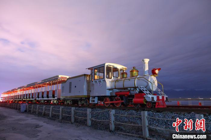 圖為茶卡鹽湖上行駛的小火車。(資料圖) 王生榮 攝