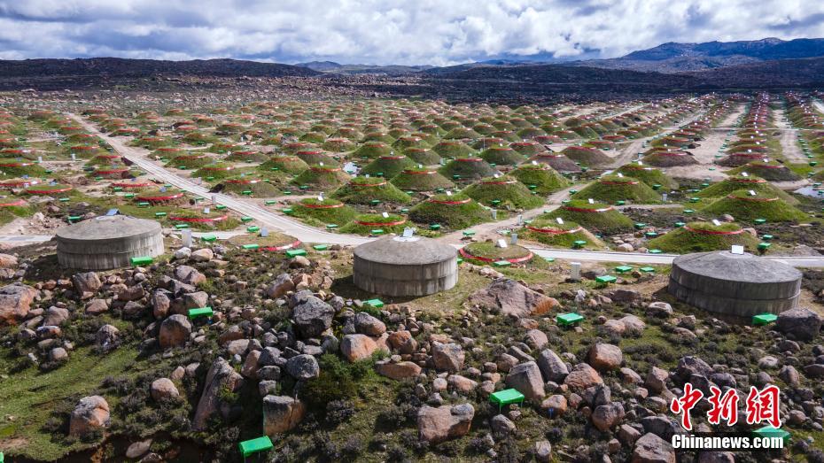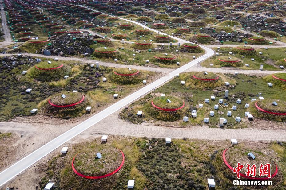 6月28日,四川稻城,稻城高海拔宇宙線觀測站均勻分布的探測器。海拔4410米的四川省甘孜州稻城縣海子山,5216個電磁粒子探測器和1188個繆子探測器,以及占地78000平方米的水切倫科夫探測器有序分布在1.36平方公里范圍,十分壯觀,這是中國建設(shè)的第三代高山宇宙線實驗站。 中新社記者 劉忠俊 攝