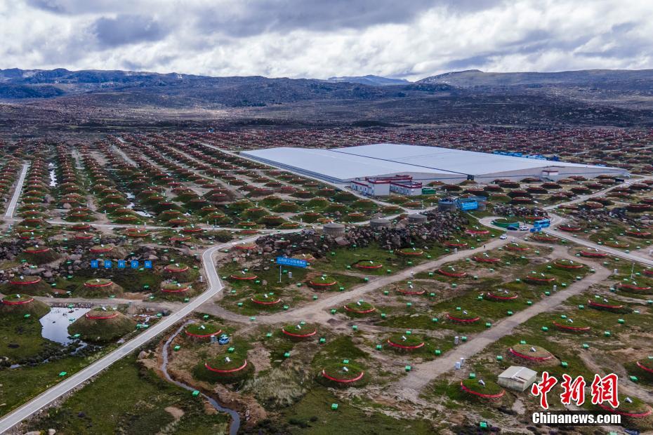 6月28日,四川稻城,航拍稻城高海拔宇宙線觀測站。海拔4410米的四川省甘孜州稻城縣海子山,5216個電磁粒子探測器和1188個繆子探測器,以及占地78000平方米的水切倫科夫探測器有序分布在1.36平方公里范圍,十分壯觀,這是中國建設(shè)的第三代高山宇宙線實驗站。中新社記者 劉忠俊 攝