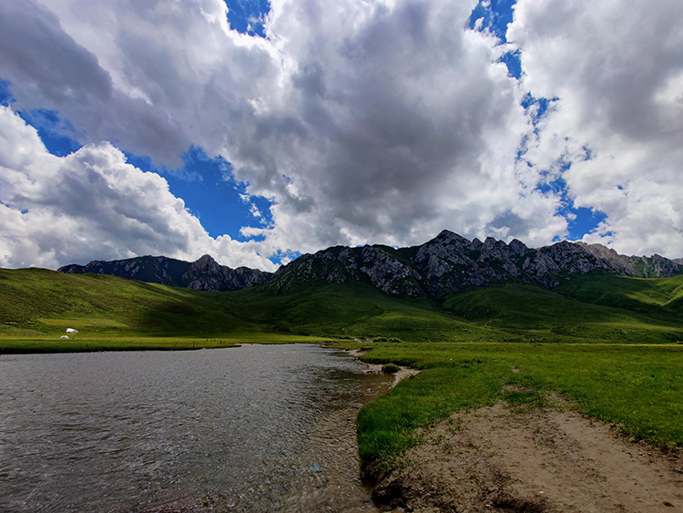 時值盛夏,青海省黃南藏族自治州河南蒙古族自治縣境內的青海洮河源濕地公園,奇峰聳立、水草豐美。藍天白云之下,高山與草原相映,風光旖旎、如詩如畫。[詳細] -